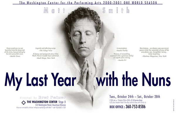 This one harkens back to my days as lead designer for Seattle Mime Theatre. The Diamond Project was a large-scale theatrical event performed on baseball fields across the USA. One of my favorite pieces I did for them. Designed this on a Mac Classic with PageMaker and Photoshop, pictures scanned from actual negatives! Old school.