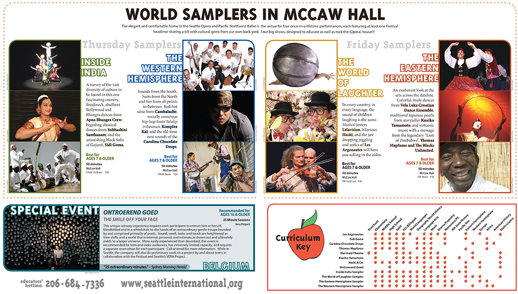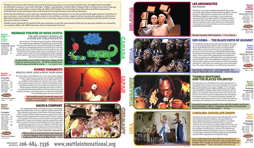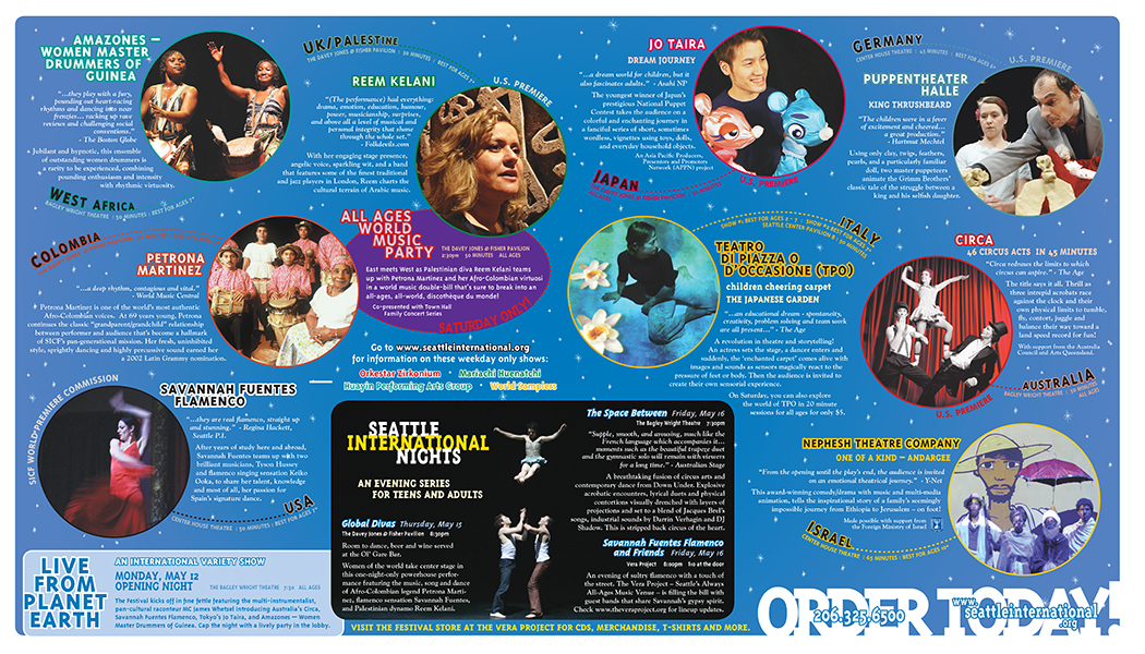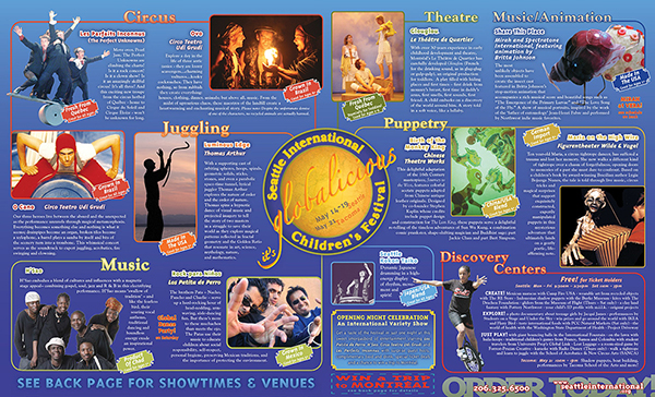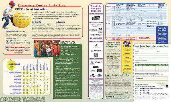 The Seattle International Childrens Festival was bar none the best live performance festival in town for many years. I took over their visuals in the last years before they rebranded to Giant Magnet. It was this layout artist's dream challenge.