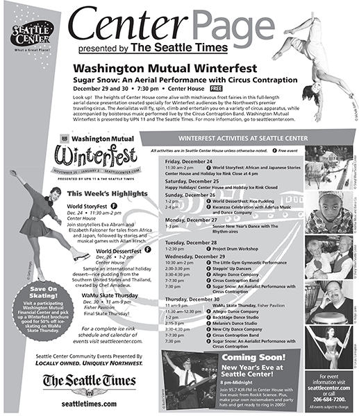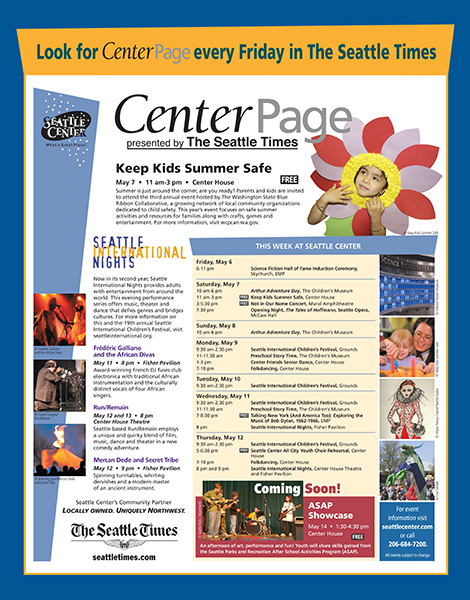 I was contract designer at The Seattle Center for one year. When I first met them about doing the work, they turned me away because I didn't have a degree in graphic design. Three months later I got a call offering me the job. Turns out they tried two people with degrees and decided experience trumps diploma. It was a great gig, great people, and fun wrangling content from the various activities. After a year they decided to not advertise any more and took the graphics in house.