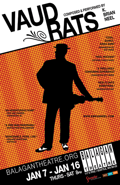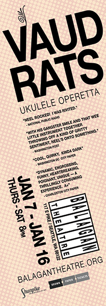 The second touring run of this critically acclaimed solo ukulele operetta. A very modern design take for a show about Vaudeville was best for a very modern take on the history. The design was also used for banners, ads, and other marketing materials.